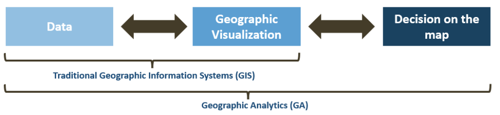 On GIS to GA: Geographic Analytics (GA) not only visualizes but also derives actionable recommendations
